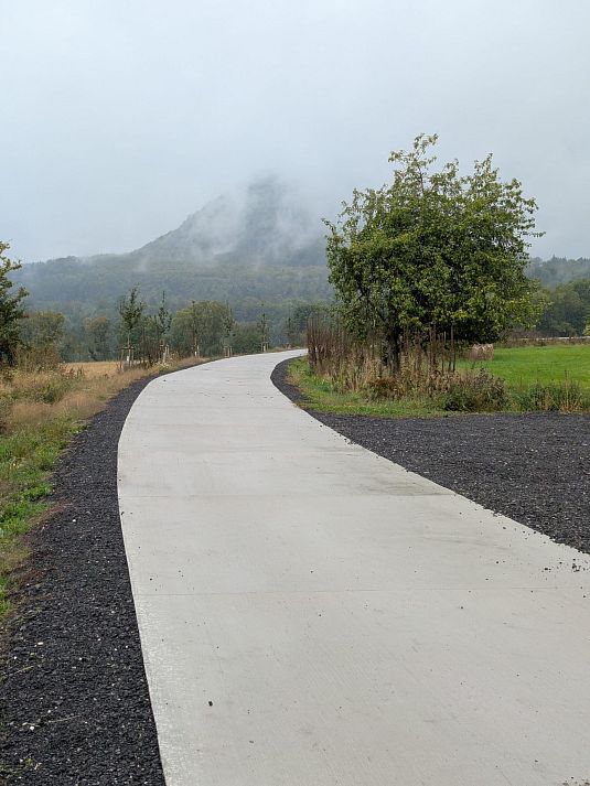 To je sice pravda, ale "za barákem" mám 15km cyklostezku z Cunnewalde do Löbau po bývalé trati Bautzen-Cunnewalde-Löbau. z toho 6 km to pořád mírně stoupá, pak se to zlomí a 6 km to pořád mírně klesá. Je to, alespoň pro mě, dost otravné jak je to skoro rovně a přitom do kopce.