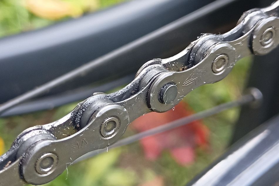 Dnes byl odhalen zdroj potíží při jizdě (občasný „přeskok" na kazetě, občasné zaškobrtnutí na převodníku,) viz foto.