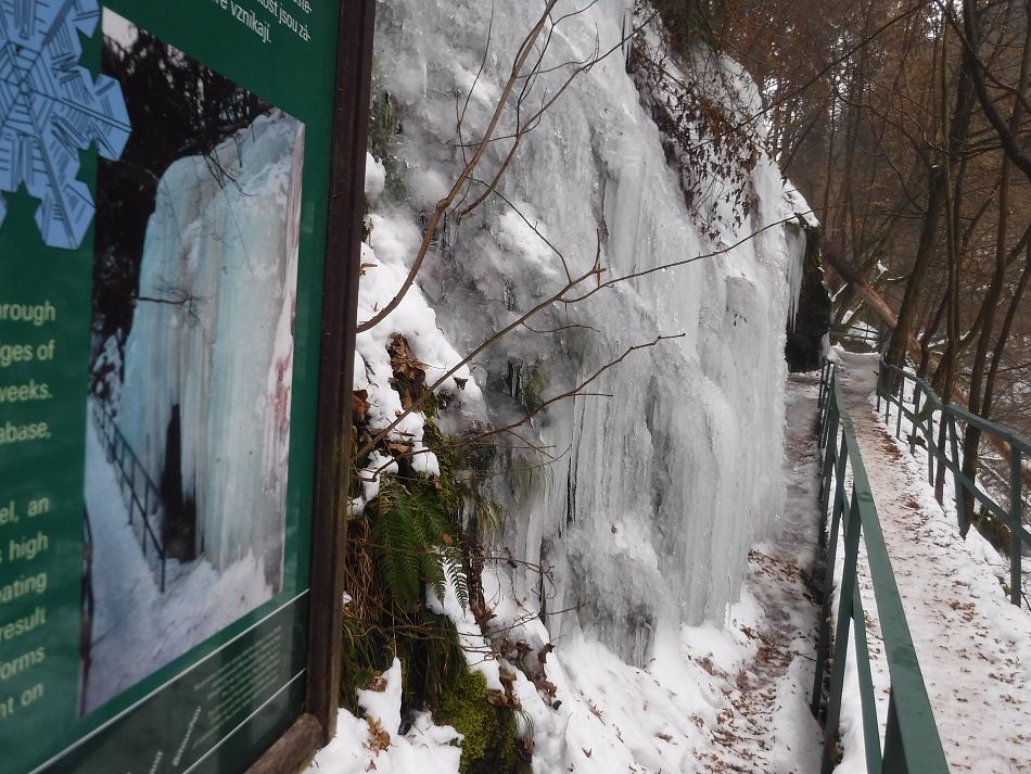 Dnes jsme raději utekli z přelidněných hor do kraje. A byla to dobrá volba. Nádherné ledopády, nesmeky na boty a mlha ani nevadila. A vypadalo to stejně jako na informačním panelu.