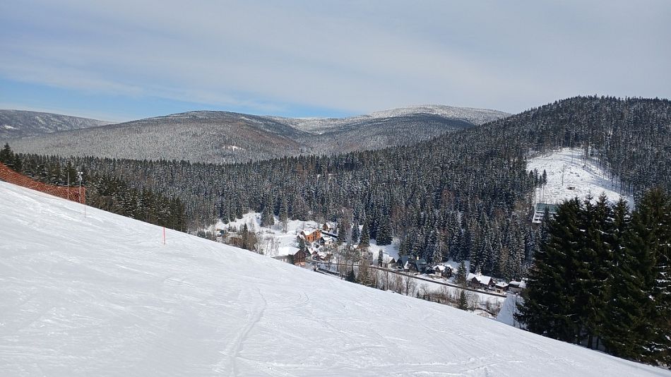 Tak dneska to vyšlo s počasím i mě. A jako bonus nejezdila lanovka na Pláně, takže jsem měl pro sebe upravenou a úplně prázdnou sjezdovku až k horní stanici Hromovky. Máknul jsem si víc než minule, vzal jsem si těžší sjezdovky, ale o to lepší bylo svezení.