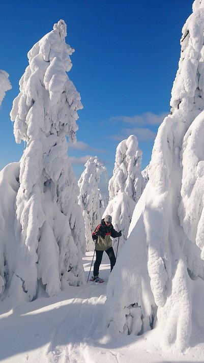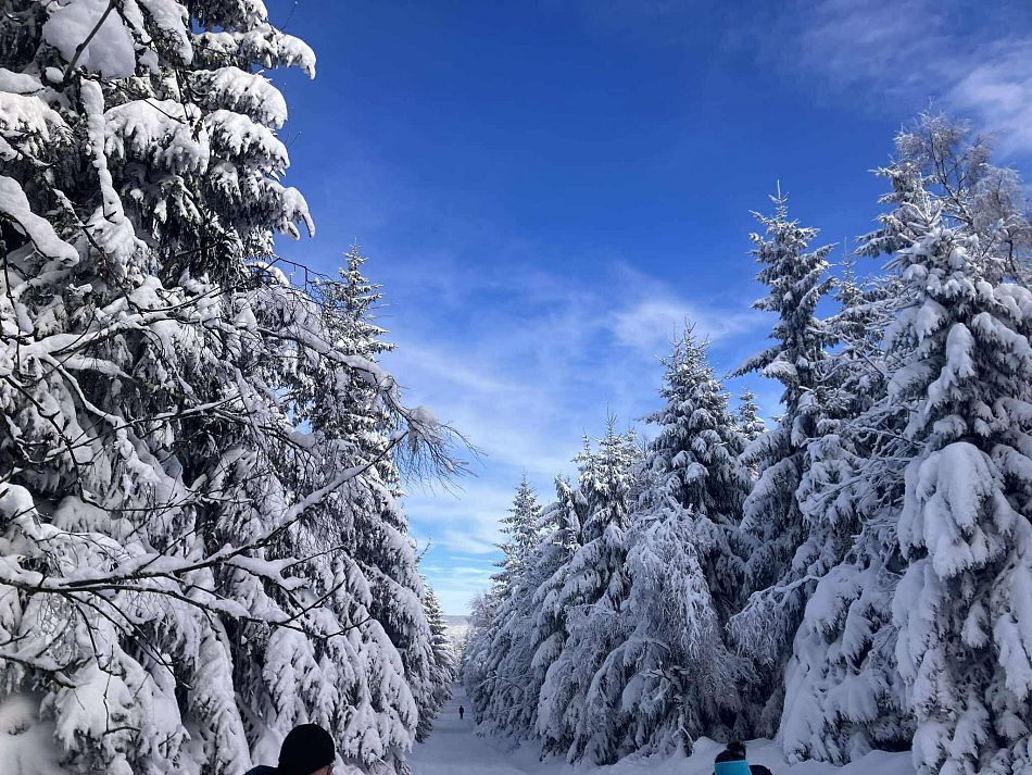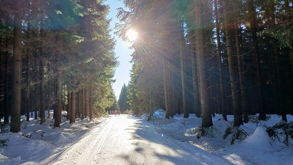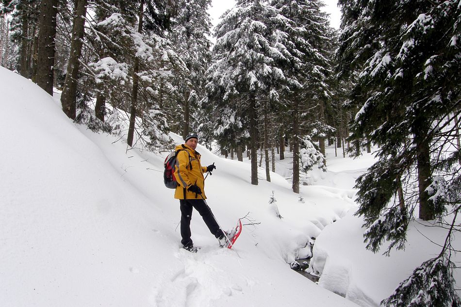 Ale zase to jde na sněžnicích, daleko od plných sjezdovek i místních běžkařských tratí. V zasněženém lese nádhera. Ještě jeden den a bude zase na horách klid.
