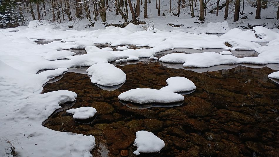 Radoval jsem se o weekendu v Krkonoších na chalupě nad Černým dolem. V sobotu všude mlha a nad nulou, takže ten nejměkčí klistr. Dojeli jsme na Lyžářskou boudu na Liščí hoře. Dál se nám v tom hnusném počasí už nechtělo. Zpět jsme jeli jen podle tyčí. Nic nebylo vidět. Navíc jsem si po cestě blbě natloukl záda. V neděli sluníčko, bylo vidět Podkrkonoší, dva pod nulou. Nádhera, ale mne bolela záda. Představa, že s sebou na tom ledu praštím, mne netěšila. Půjčil jsem si moderní sněžnice a vyrazil do okolních lesů. Byla to nádhera. Takový svobodný pohyb po sněhu v těžkém terénu jsem ještě nezažil. Vážně uvažuji o pořízení sněžnic. Je to naprosto svobodný pohyb bez stressu, jak to na běžkách dopadne. V mém věku, už nejspíše blbě.