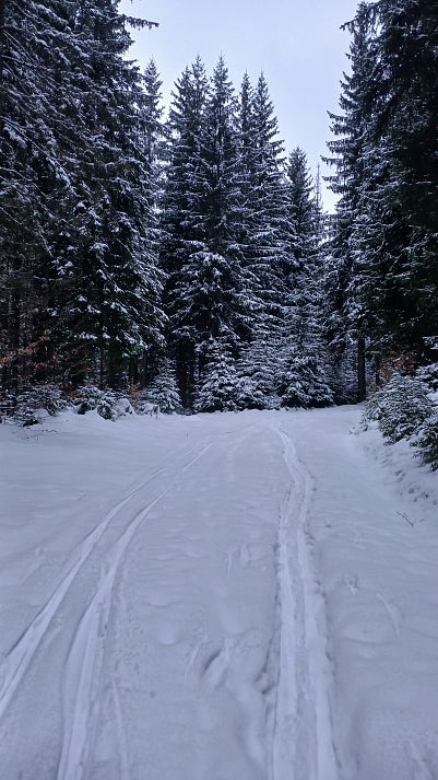 Dnes poprvé ve stopě. Lehké kolečko Souš, Smědava, Knajpa, Mariánskohorské boudy, protrženka, U studánky, Souš. Trochu sněžilo, stopa pomalejší, na modrém Swixu jistý odraz. Jsme nadšeni, stopy téměř prázdné, parkoviště taky. Vzít si dovolenou se jednoznačně vyplatilo. Zítra zakroužíme kolem Hvězdy.