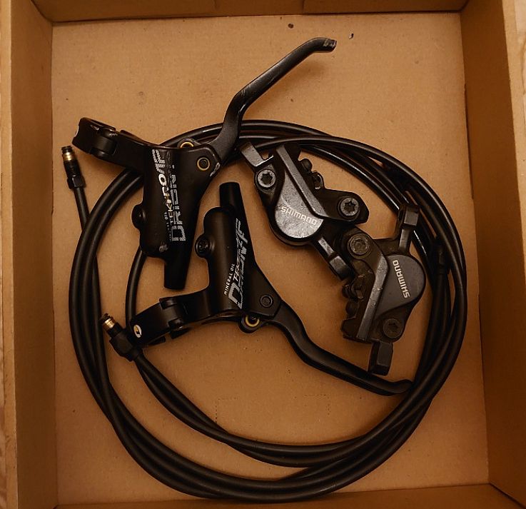 Pokud bys měl zájem, čistě ze známosti ti můžu přenechat zbytek po mém ladění brzd na tříkole. Je to pochopitelně nesourodá sada komponent, ale měla by být po smontování funkční (tedy na kusy komplet).