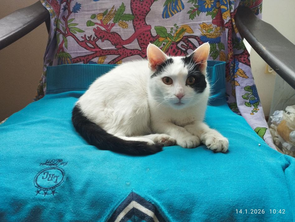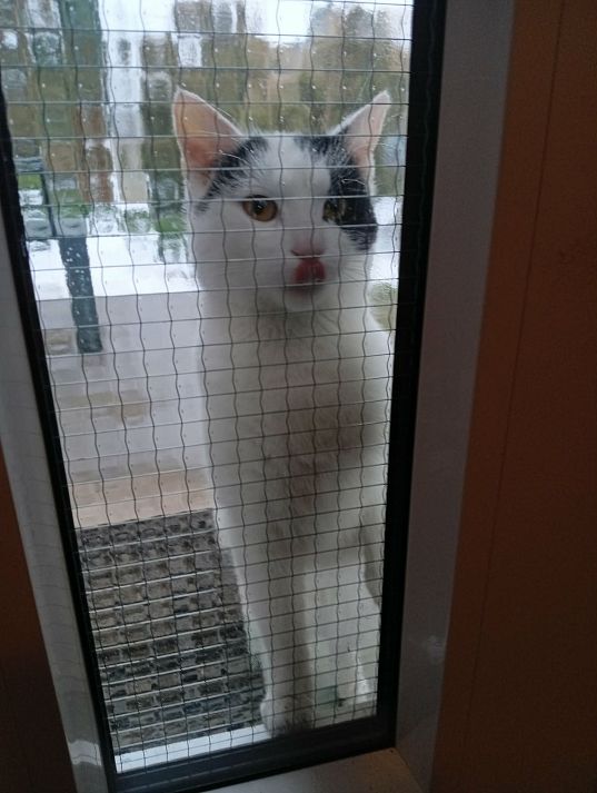Sem ho asi před měsícem našel na zahradě apatického, promrzlého, s poraněnou levou zadní, vzal jsem ho do tepla.. od té doby nemám sílu ho odmítnout, když se objeví u dveří, přitom už skoro nekulhá..
