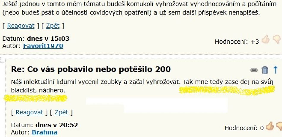 Blokování ve společných tématech považuju za zneužití tématu, které je určené pro všechny. Mentálně se díky tomu pohybuješ na úrovni mesjé Párika, bohužel..