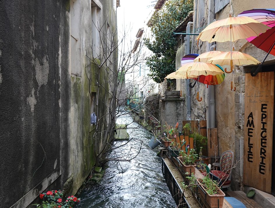 Hned za řekou Rhônou, tedy vlastně jejím východním ramenem, protože odsud už vytváří deltu, ve které se nachází kraj koní, býků a rýže Camargue, tak hned za tím mostem krajina mění. Ubylo větrolamů, širokou rovnou planinu terorizuje vítr.