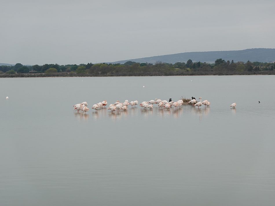 Přesto a pokaždé jsem nadšen z plameňáků, co neustále zobany prozkoumávají dno mělkých lagun, nevynechám zastávku v La Maguelone, což je takový vršek osázený vinicí mezi těmi vodami, na kterém stojí katedrála z 12. století. Ne moc vznosná ani fotogenická, zato velmi fortelná.