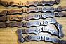 Můžeš prozkoumat z téhle fotky. Takhle řetěz jednou dopadl na treku. Nevím, jestli se to stalo při té jedné cestě, ale články jsou tam vidět prasklé celkem čtyři a ani jeden nýtovaný - řetěz měl spojku (a teď se mě nikdo neptejte, proč jsem ji nerozpojil, možná mi přišlo jednodušší řetěz roznýtovat, když už byl na nic, později jsem už uměl spojky rozpojovat lehce, co tak z treka pamatuju).