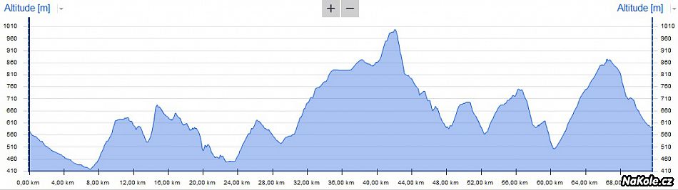Hezké kopce, výhledy do krajiny, na louky, prima poježdění nahoru i dolů, několikero studánek. Prostě paráda