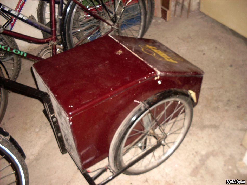 Já stavěl teď přes zimu vozík,už je hotový vyzkoušený zatím bez nákladu jezdí dobře.Váha asi 7.5kg,nákladní prostor 64 litrů takže dostatečný prostor pro vše potřebné.Kolečka 16palců samotný úložný box je ze dvou na sobě ležících plastových vaniček z domácích potřeb,jsou sesazené systémem kolík otvor a zajištěné pomocí čtyř gumových pásků (používají se na lyže)tažná tyčka je odnímatelná na rychloupínák aby vozík tak nepřekážel ve vlaku.Ještě uvažuji že to nastříkám nějakou barvou,bílá se bude asi dost špinit.Já měl už něco podobného dříve ale s drátěným košem,toto má výhodu že do vozíku není vidět a tak neláká nenechavce,tak tam lze bezpečně převážet i dražší vybavení.Na vrchu na korbě jsou ještě čtyři malá madla kde se dá pomocí gumicuku připnout další náklad třeba taška s nákupem,nebo mokrý stan aby vyschnul při jízdě.Fotka není nic moc ale snad je z ní vidět jak vypadá.Náklady na stavbu byly cca 1000kč.