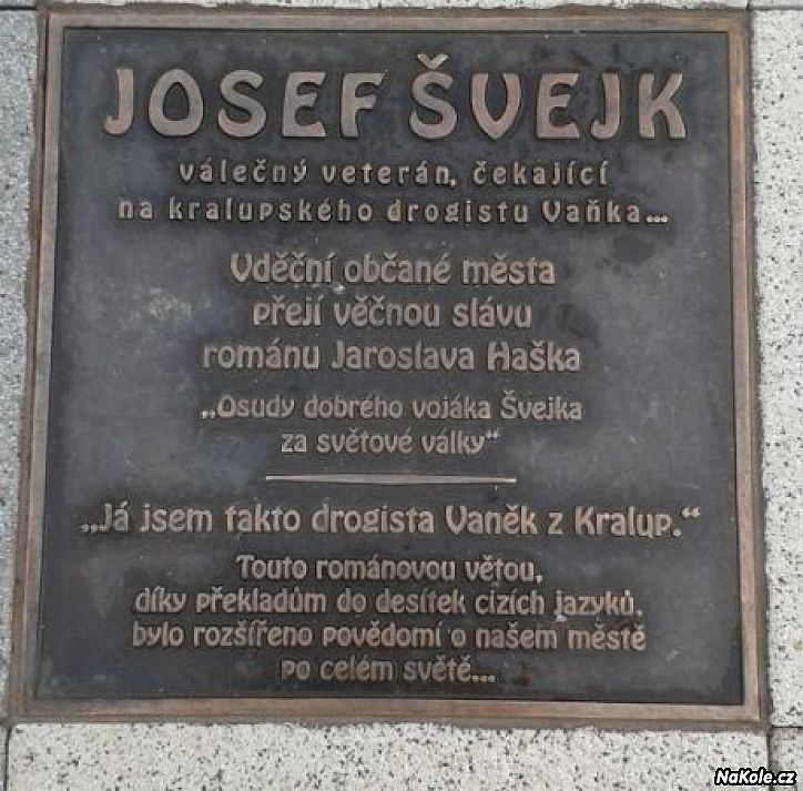 Mimochodem, v Kralupech mají lavičku se Švejkem.