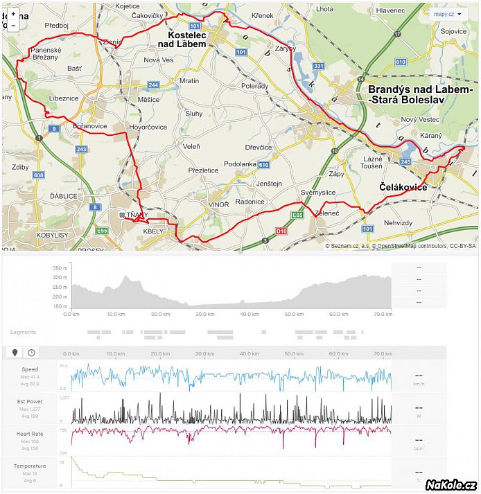 Na průběhu teploty je vidět, jak se postupně ochlazoval, protože jsem měl kolo doma, a ven ho evidentně strčil na krátkou dobu.