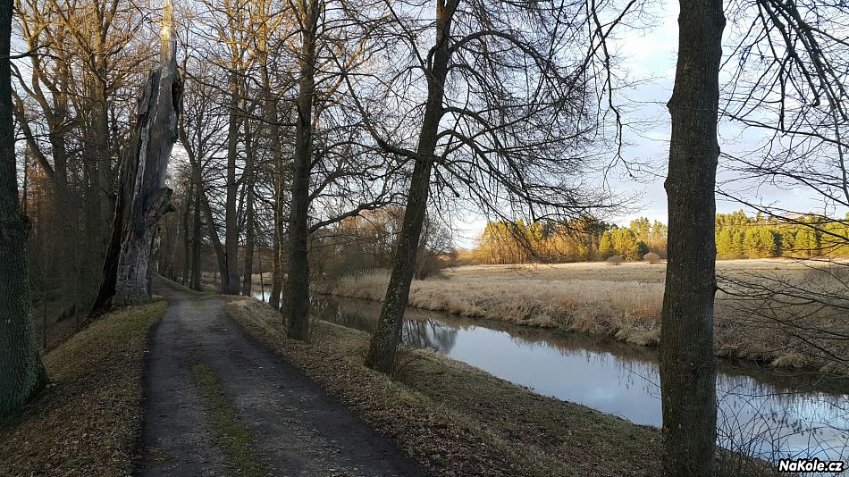 Kousek výš nad ní. Nad zelenou vede ještě jeden starý chodníček směrem k rozcestí U Obrázku, odtamtud startují. Sice trochu foukalo od jihu, ale dost opadal, takže byl za chvíli na nábřeží.