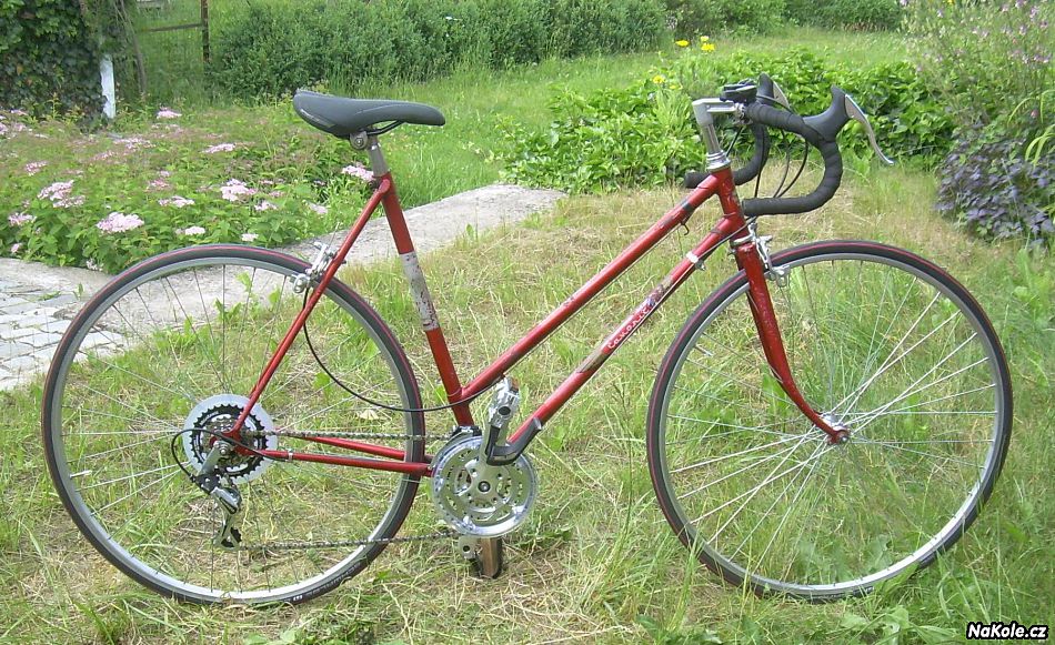 Toho jsem dostal po ukončení devítiletky, byl to tehdy takovej zvyk rodičů. Měl tři převody, berany a kožený sedlo. V roce '64 byl podpultovej za nestydatejch lehce přes 900,- Kčs. Hned po první brigádě jsem ho přestavěl na 2x5 - dvojtác, pětikolo, pákovej přesmykač, řetěz a pedály. Přehazka chodila i na tom.