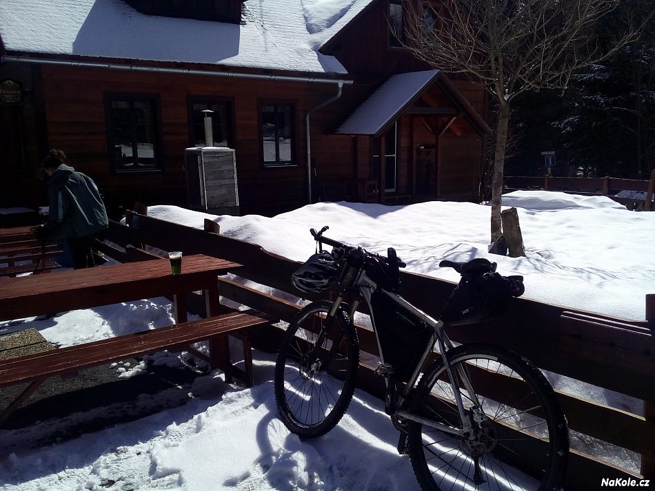 Tak jsem vyměnil pro dnešek lyže za kolo. Nahoru paráda, na cestu dolů to rozbředlo a byl to boj.Ale stálo to za to