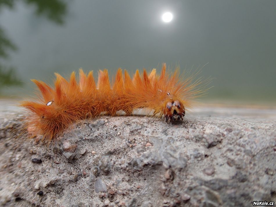Den předtím jsem vyfotil chlupatou housenku. Sice to bylo u rybníku, ale tématicky se to hodí... :-)