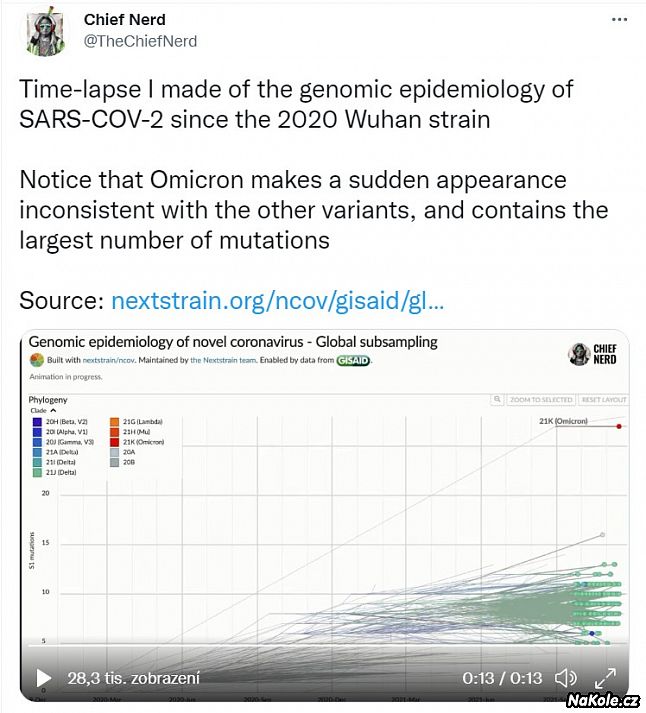 Zajímavé jsou nepotvrzené zprávy že omicron možná dokáže prolomit rovněž imunitu získanou proděláním infekce. To by ale potvrzovalo domněnku, že tato varianta s dosud nevídaným množství mutací je rovněž laboratorního původu. Viz. přiložený obrázek ilustrující že omikron, který se z ničeho nic objevil, se zcela vymyká dosavadním mutacím.
