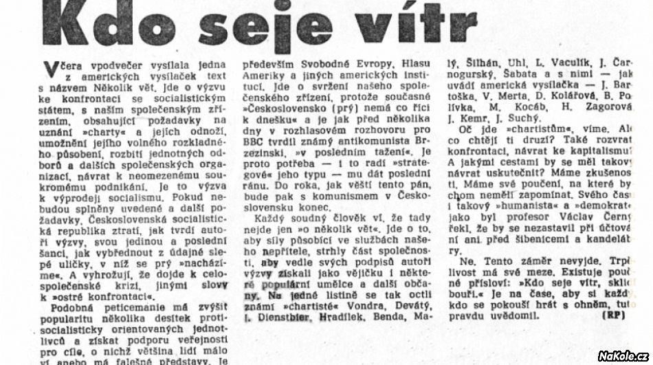Vlastně jsi to o sobě už dříve napsal, že jsi diktátorovi Brežněvovi vděčný za "bratrskou pomoc". Nepomáhal jsi nakonec Bilakovi koncipovat text na voucher pro ruské dovolenkáře? Asi ne, ale souhlasil jsi. Proto jsi byl a vždy budeš odporný kolaborant, který pomáhal cizí armádě proti vlastním spoluobčanům.