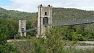 Původně to byl visutý most z roku 1856, několikrkrát byl pobořen velkou vodou, a zahlodal na něm zub času, tak jej v roce 1982 vyřadili z provozu a chtěli ztrhnout.Ale občané městečka Rochemaure měli svůj most rádi a uspořádali sbírku na jeho záchranu. No, most zcela nezrekonstruovali, jen opravili pylony a ty slouží jako podpory stojek "himalájské" ocelové lávky, kterou mezi ty původní pylony vpadovali. Zajímavé řešení, vlastně je to nová konstrukce z roku 2013, která tak trochu připomíná ten původní visutý most. Kolo je lepší vodit, dost se to houpe