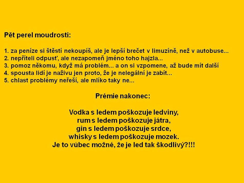 Dooobře, už do toho nebudu šťourat, protože mně to protentokrát vtipné nepřišlo, no ;-)