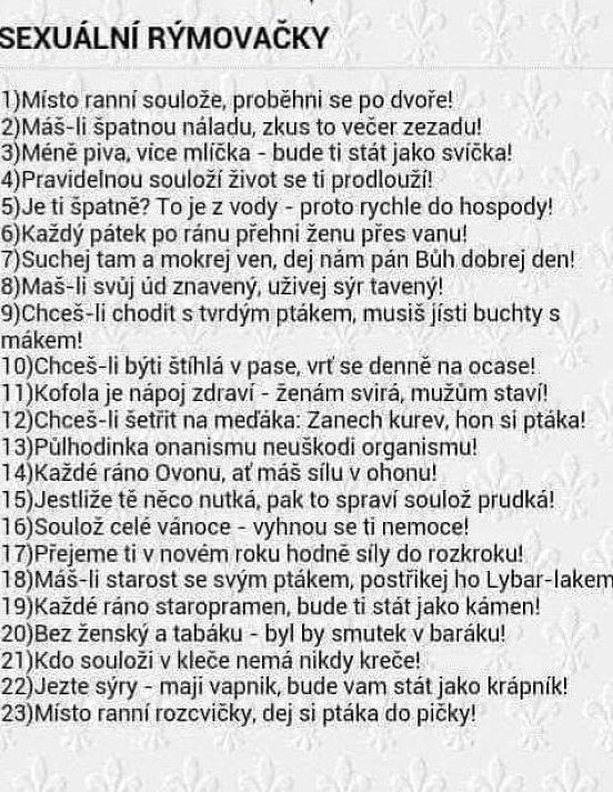 a další bláboly, Čestmír 54 let se chlubil erekcí do 15-ti sekund a výkonem 1,5 hodin bez přestávky, 6 poloh, manželka byla 3x a každou noc, prostě sexuální predátor :)