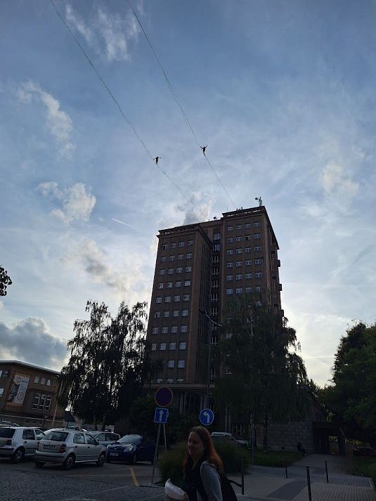 Na téhle fotce jo, ale obecně se highline tahají mezi různými budovami... přemýšlím, zda třeba hrad Trosky počítat za zděnou budovu? Byť zrovna hrad by měl vzhledem k účelu mít zdi výrazně předimenzované... :-)