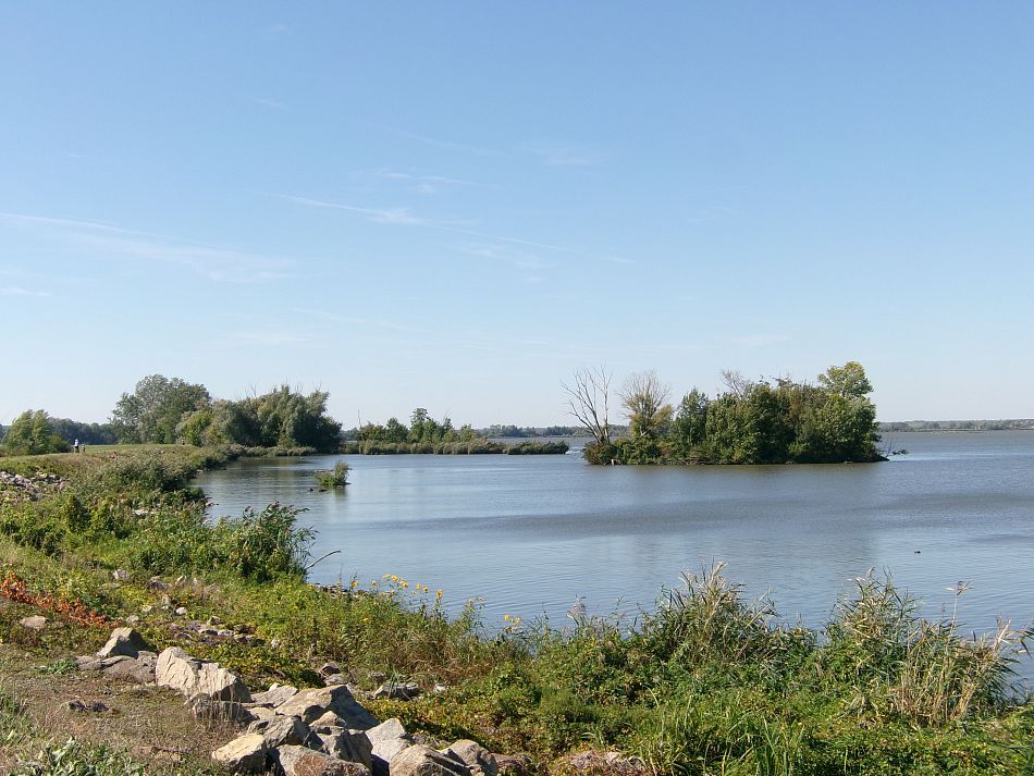 V neděli sice hodně foukalo, ale byla to poslední letní neděle i s odpovídající teplotou. Před protivětrem cestou na jih jsem se od Židlochovic do Uherčic schovala v lužním lese, ale od Uherčic to přes kopec s vinohrady bylo na větru. Na Pálavských jezerech se dělaly vlny s hřebínkem: