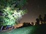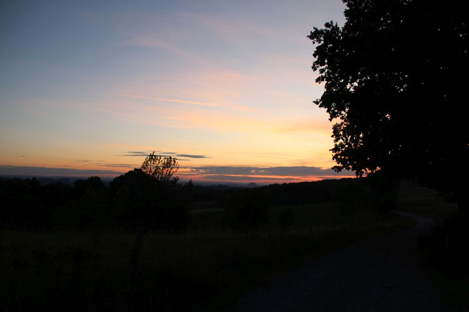 Sobotní předpověď slibovala teplo a bezmračnou oblohu , měsíc byl v novu, tak jsem se rozhodl zase si jednou užít spaní venku pod hvězdami. Tentokrát pěšky. Z včerejší Lysé mě v noci brutálně dvakrát kousla křeč do lýtka. Kola byla pro tentokrát dost. Vydal jsem se do svých oblíbených Hostýnských kopců s úmyslem přespat na Skalném, na louce s výhledem na Hostýn a udělat si nějaké noční foto. Nevzal jsem to nejkratší cestou, naplánoval jsem si trasu pokud možno mimo civilizaci, takže jsem sebou tahal i jídlo a vodu na celý den a přístí ráno. Vyrazil jsem z Trojáku po žluté. Žluté mám rád, zpravidla to jsou úzké pěšinky, málo frekventované, ale často v pěkném prostředí. Dále pak Cestou partizánské brigády J. Žižky k valašskému orloji v Držkové a zase nahoru pěknými, pustými lesy. Místní kopce dávají mým unaveným lýtkám docela zabrat. Cestou jsem narazil i na dvě funkční studánky. Škoda, že jsem to nevěděl dřív, mohl jsem mít lehčí batoh. Na Skalný chodím pěknou neznačenou pěšinou po hřebeni nad prudkým srázem se spoustou skalních útvarů a polámaných stromů. Vypadá to tu divoce a tajemně. Jedna skála slouží i jako symbolický hřbitov přerovských horolezců. Na louce jsem si hamaku pověsil v malé skupince stromů. Na co mě ale předpověď nepřipravila, byl poměrně silný vítr.