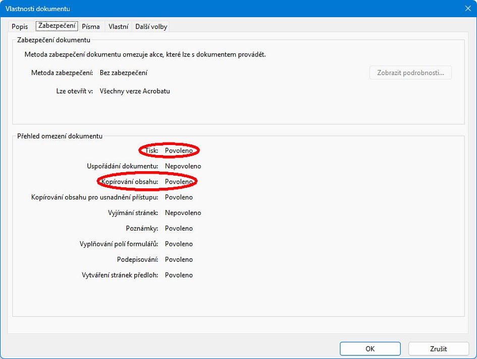 Já tu ještě pro xtondu doplním ohledně "zmrzačeného PDF", že jeho tvůrce klidně může zakázat některé operace s ním, viz obrázek.