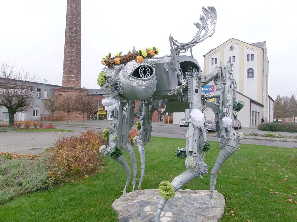 Na polích probíhají podzimní práce a na asfaltových cestách mezi poli je natahané bláto. Jela jsem tentokrát celou cestu k jezerům po silnicích a narazila jsem na dvě skulptury, které jsem ještě neznala. V Židlochovicích je krásná Moucha domácí vytvořená z různých armatur a moc se mi líbí.