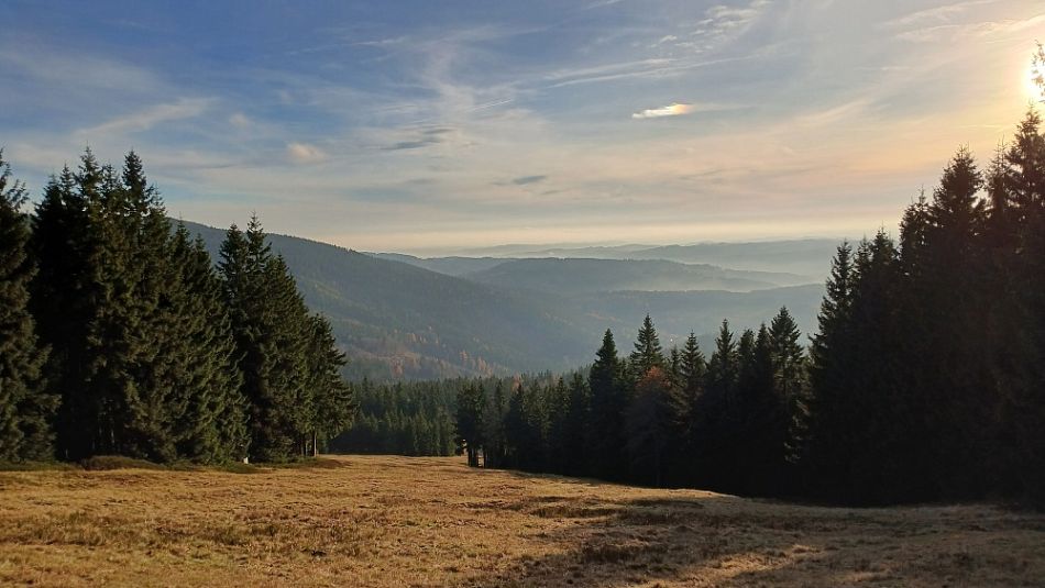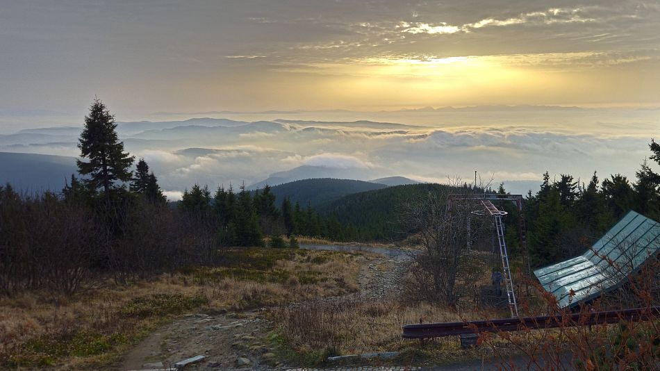 Včera ráno byl Klínovec zahalen do mlhy, ale odpoledne bylo azuro, tak jsem si udělal uvítací kolečko "vokolo komína". Klínovec zkontrolován z různých vyhlídek a je stále na svém místě :o)))