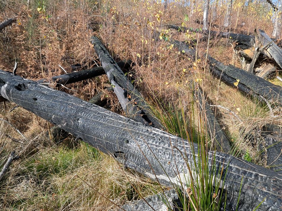 Vzpomínám, že vyšlapanou cestičku jsem vždycky míval podél slackline, naštěstí teď už se mi 20m většinou daří přejít na druhou stranu, tak po mně nezůstává pěšina mezi stromy, jen místo u obou stromů, kde nalézám a seskakuji.