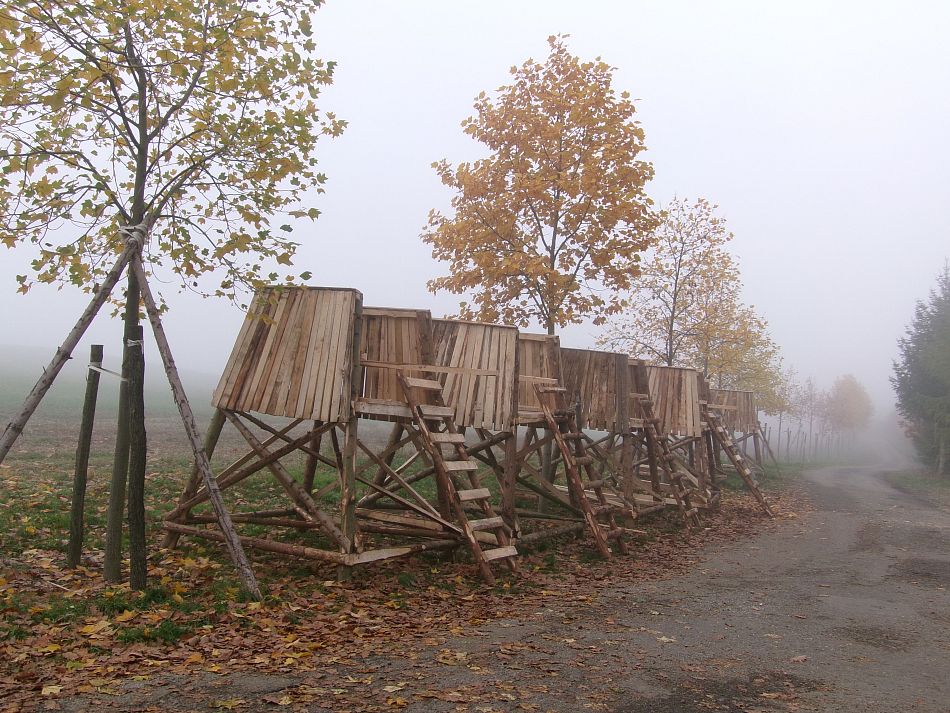 Nahoře u hájenky stavěla parta kluků posedy na vánoční trhy, bylo jich tam (těch posedů), jak v posedárně, ani se mi všechny nevešly do záběru :-)