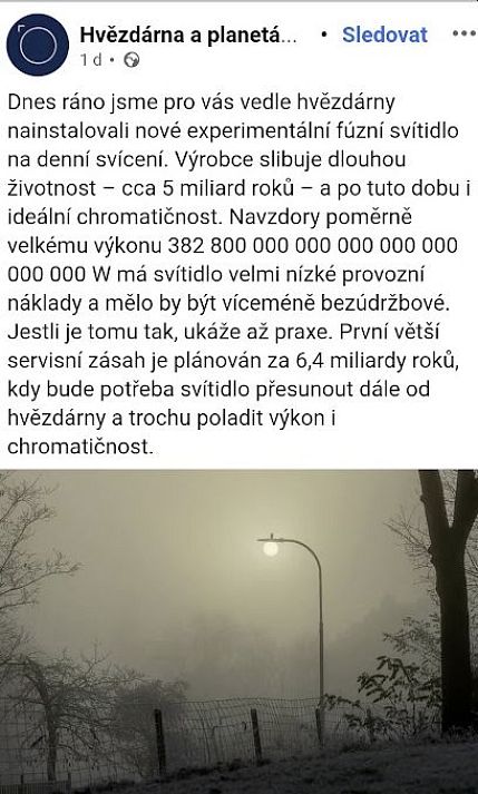 Taky jsem ho dneska ráno přes mlhu zahlídl, ale myslel jsem si, že je to nějaká blízká hvězda, co je zrovna v úplňku!