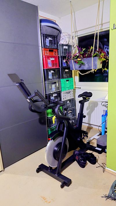 Tak jsem si pořídil tohle, dneska to dovezli. Trochu nervák to sestavit, protože jako vždyky, návod jak přišroubovat ty příčníky na kterých to sedí jako oro blbce i s obrázky, ale jak nastrčit ty řídítka a pozapoovat kablíky nepopsáno vůbec. Ale stojí, jede potichu a hlavně, fakt to velmi věrně připomíná jízdu na kole.