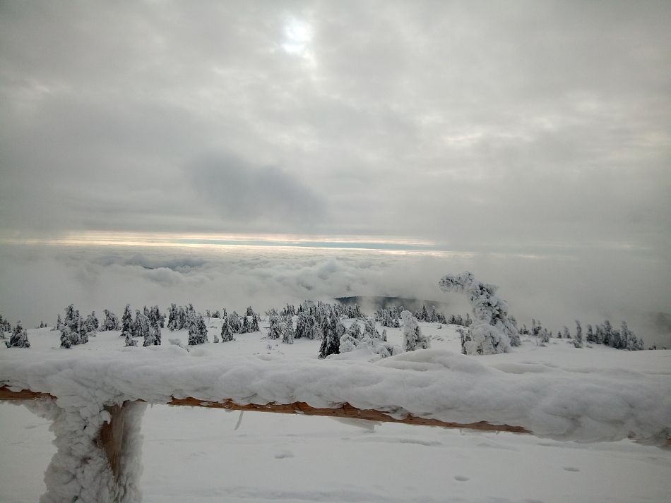 Situaci jako na první fotce jsem včera na Pláních zažil taky. Vyšlápl jsem si lyžemi na zádech, ale plného slunce jsem se nedočkal.