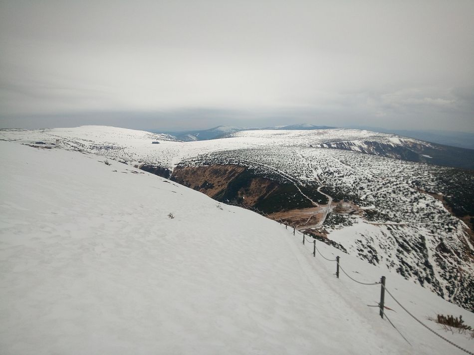 Tak jsem se včera podíval na hřebeny. Počasí nádherné sluníčko. Sněhu ale zoufale málo a navíc spíš led než sníh. Nejlepší výbava na hřebeny jsou teď dobré boty a kvalitní nesmeky, na lyžích je to spíš trápení.