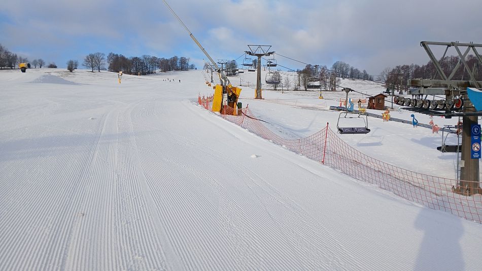 Tak dneska to vyšlo s počasím i mě. A jako bonus nejezdila lanovka na Pláně, takže jsem měl pro sebe upravenou a úplně prázdnou sjezdovku až k horní stanici Hromovky. Máknul jsem si víc než minule, vzal jsem si těžší sjezdovky, ale o to lepší bylo svezení.