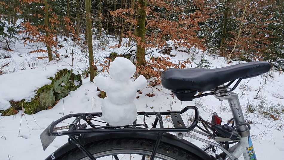Letošní poslední sněhový ... Dopoledne to šlo ještě na kole, ale na silnici jsem si netroufla, v lese se jelo hezky, letošní kilometry jsem zarovnala na 6 450. Během odpoledne napadlo hodně sněhu, takže nový rok začne bez kola.