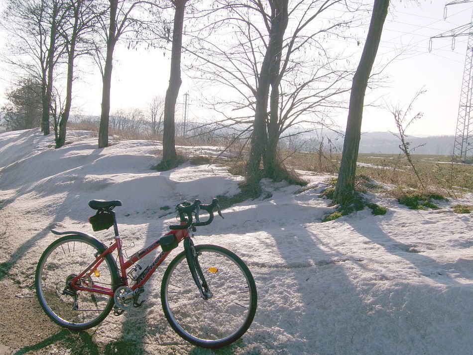 Počasí začíná přitvrzovat. Minulý týden se dalo pěkně jezdit po čistých suchých vymrzlých silnicích, ale pak trochu nasněžilo a už to je zase na hřebíky :-( Výhodou je, že se nestaví a nejezdí náklaďáky do lomu, v pracovní dny je teď kolem poledne na naší silničce pod lesem klídek. Sice je zima, ale říkám si, že pořád lepší, jak na trenažéru. Třicet kilometrů na hřebíkách vydá za padesát bez nich.
