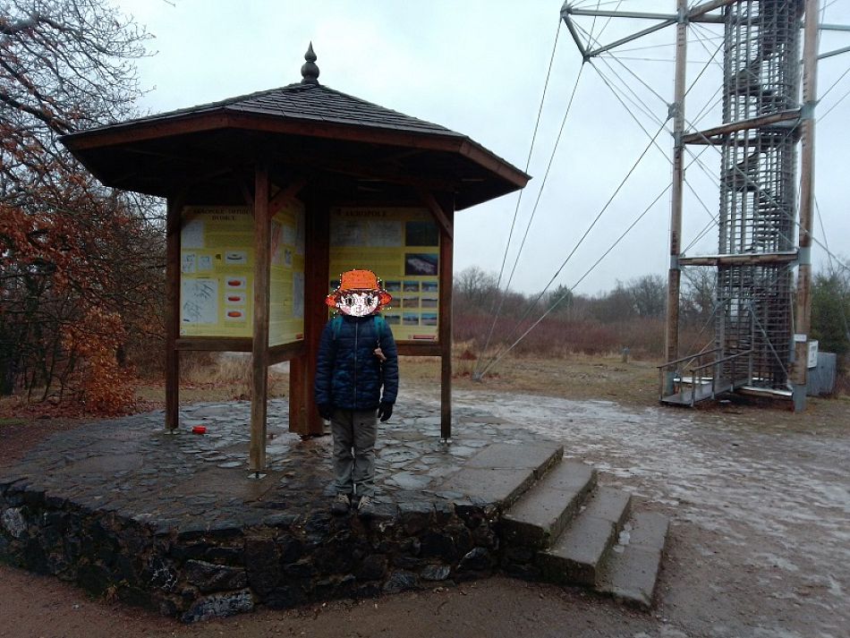 Potěšilo mě, že tentokrát už jsem se neklepal strachy, když malý turista vyběhl až na vršek rozhledny. Páč já se svou závratí se dostanu tak maximálně na pátý schod, notabene na takto subtilní nedůvěryhodnou konstrukci.