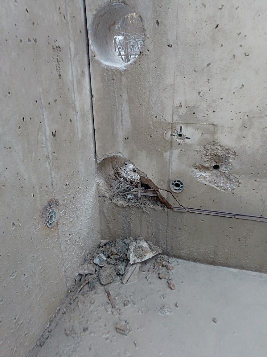 Zaujaly mne kotevní patky demontovaného stavebního jeřábu zabetonované do základů domu.