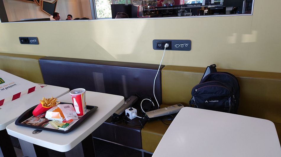 Mám 4 baterie, ale mají už něco za sebou, ale těch 40-55 km na kole s vozejkem dávají, tedy dojezd 160 km. Dál - 177 km potřebuji běžně jen jednou za cestu z Norimberku do Heilbronnu a tam prostě tu hodinu u mekáče vydržím.